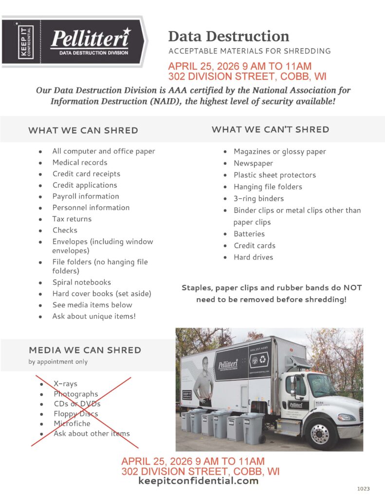 Community Shred Event Village of Cobb and Town of Eden